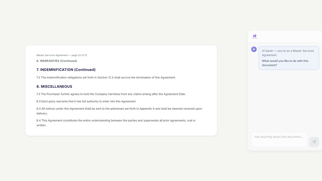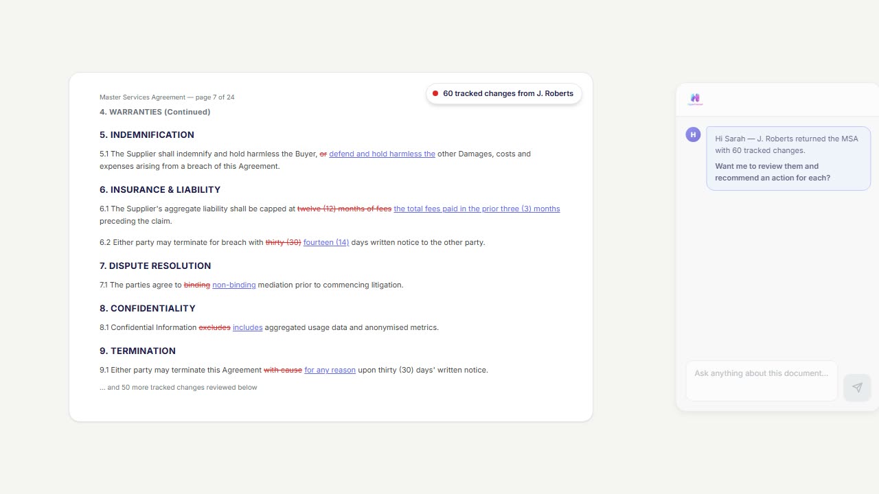 A 40-page MSA reviewed in the time it takes to read 8 pages.