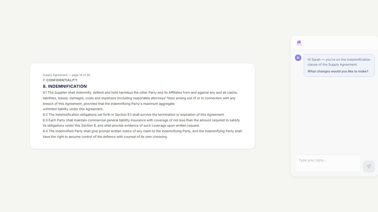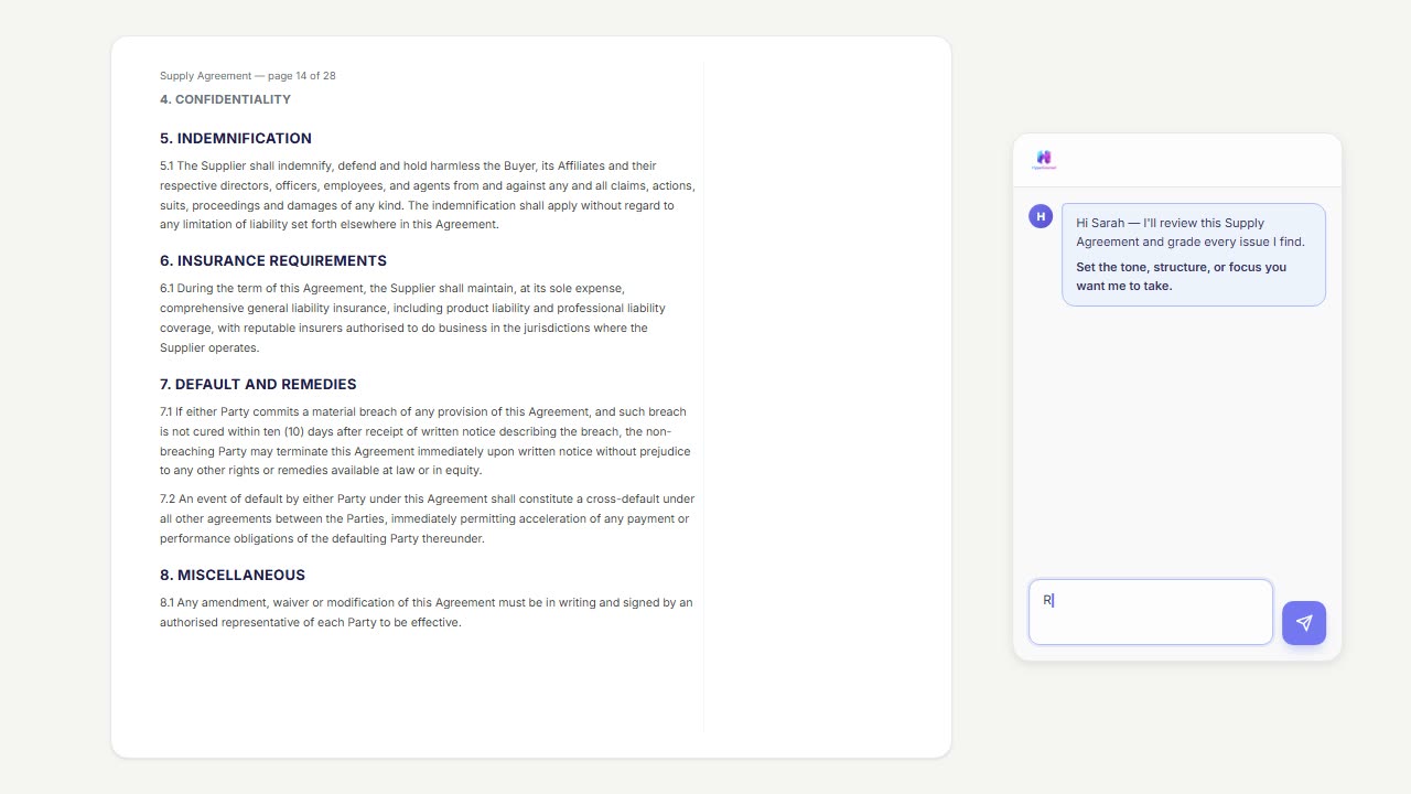 I spent 20 years hand-drafting commercial agreements. I didn't want a tool that would take that work away - I wanted one that would speed up the slog. HyperCounsel threads that line exactly.